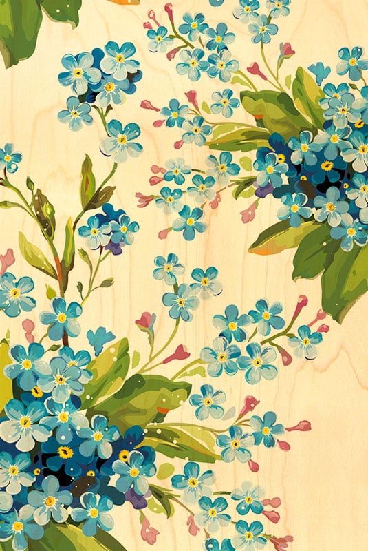 CARTE POSTALE BOIS FLEUR MYOSOTIS