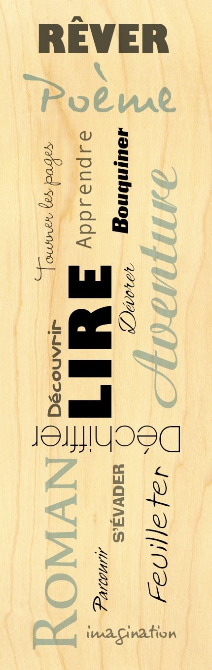 MARQUE PAGE BOIS LIRE ECRITURE BLEUE